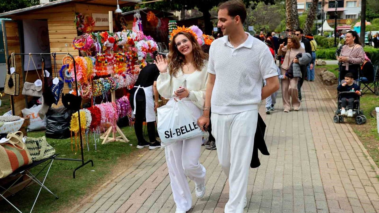 Parklarındaki stantları ziyaretçiler gezerken katılımcılar, başlarına portakal çiçeği taçları takarak hatıra fotoğrafı çektirdi. Karnaval renkli görüntülere sahne oldu.