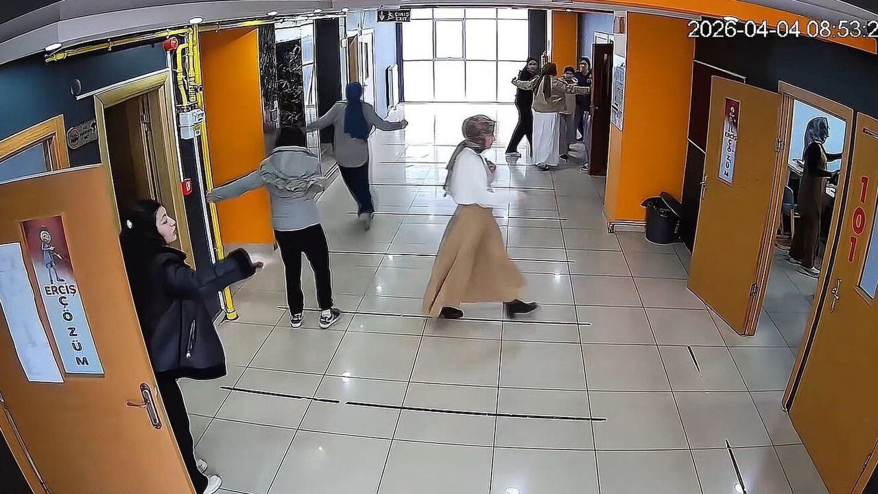Van'da 4 Nisan sabahı meydana gelen 5.2 büyüklüğündeki depreme kursta yakalanan öğrenciler büyük korku yaşarken, görevli öğretmenlerin canlarını hiçe sayarak öğrencilerini kurtarmak için mücadele etmeleri ise güvenlik kamerasına yansıdı.