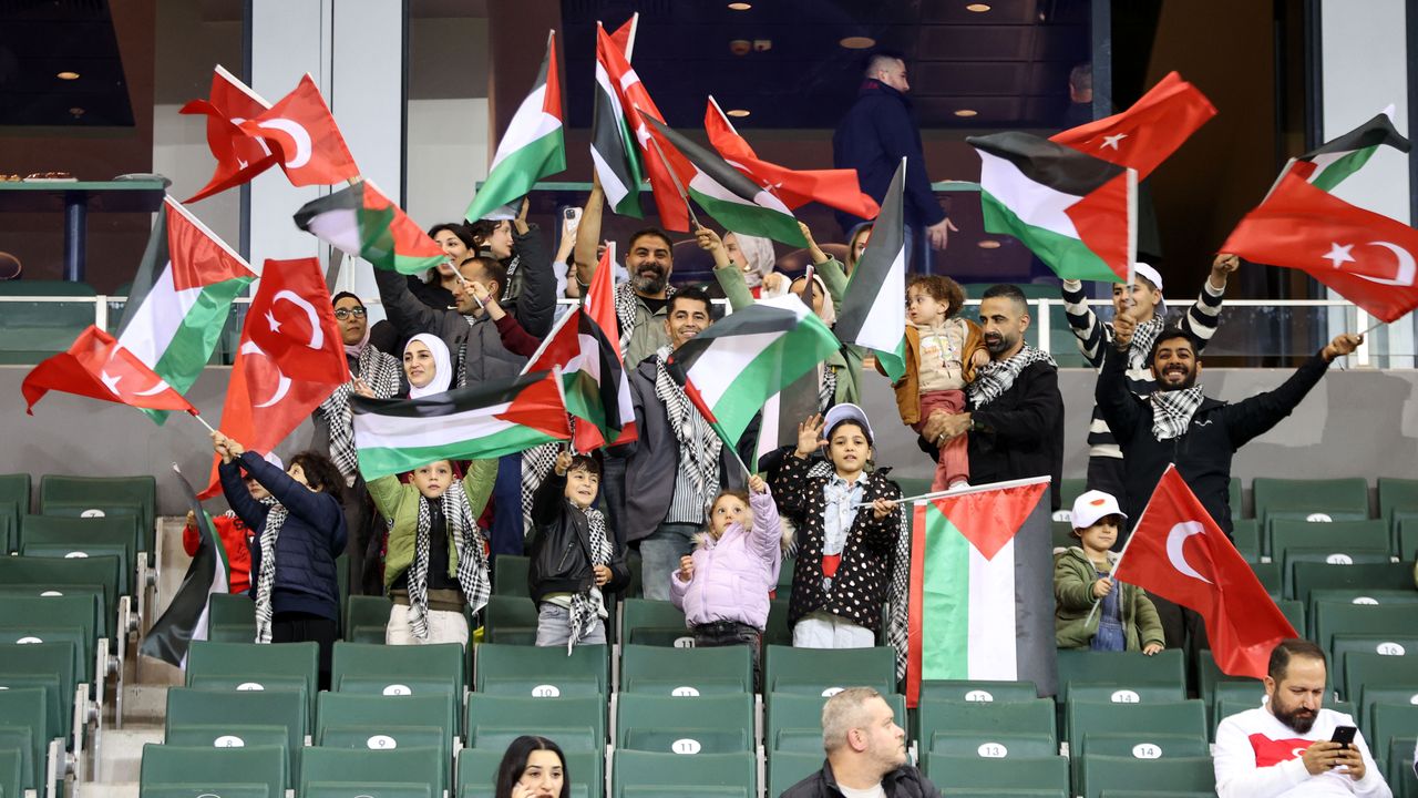 KOCAELİ (AA) - 2026 FIFA Dünya Kupası Avrupa Elemeleri E Grubu'nda Türkiye ile Gürcistan arasında oynanacak karşılaşma için AA'nın Filistinli çalışanlarının çocukları ve refakatçileri de tribünde yer aldı.