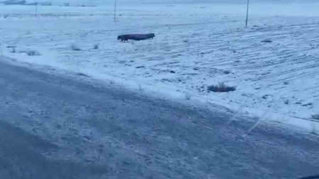 Sabah saatlerinde ilçeye bağlı Kömürlü köyüne yakın bir noktada araçlarıyla seyir halinde olan sürücüler, yol kenarındaki tarlada dolaşan domuz sürüsüyle karşılaştı. Tarlada yiyecek arayan sürüyü cep telefonu ile kayıt altına alan sürücü Eşref Karaataman, domuzların yerleşim alanına yakın bir bölgede görülmesi üzerine hayretler içerisinde kaldığını söyledi.