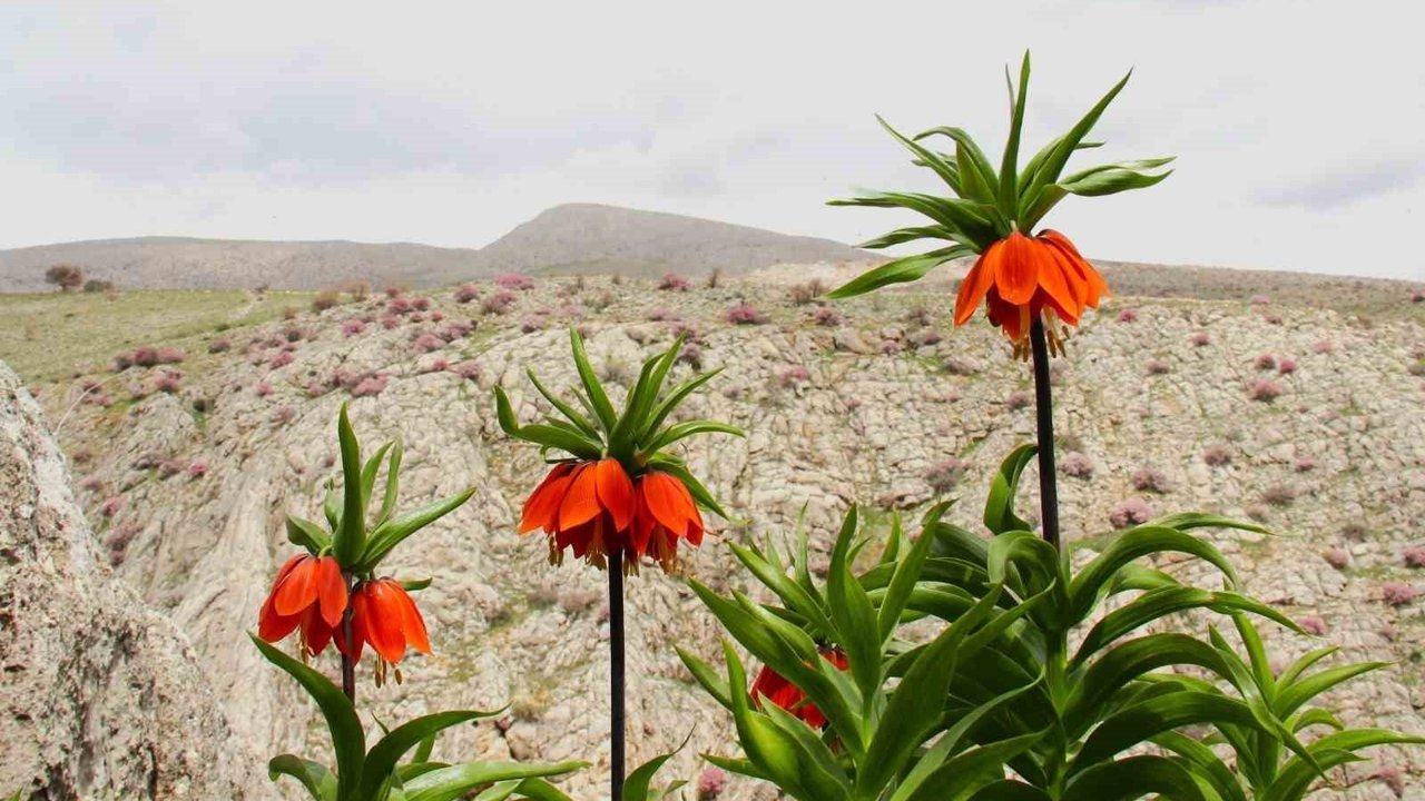 Kahramanmaraş'ın Afşin ilçesinde baharın gelişiyle birlikte ters laleler çiçek açtı. Binboğa Dağları eteklerinde, kayalık alanların arasından çıkan bu nadide çiçekler doğaseverlere görsel bir şölen sunarken, yetkililerden önemli bir uyarı da geldi.