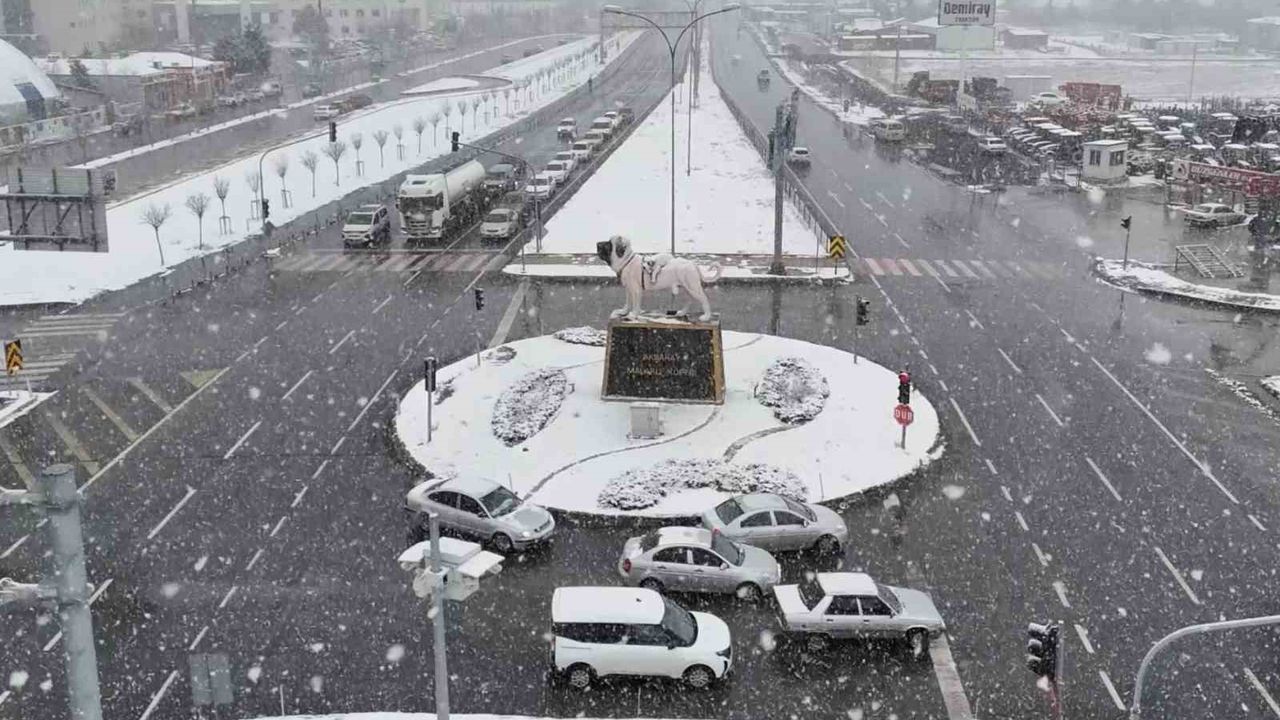 Aksaray'da hafta sonu beklenen kar yağışı akşam saatlerinde başladı. Kısa sürede etkisini artırarak devam eden kar yağışı şehri beyaza bürüdü. Kar yağışı şehir genelinde halen devam ederken, trafikte kısmen olumsuzluklar yaşanıyor. Şehir merkezinde etkili olan kar yağışı Ekecik bölgesi, Güzelyurt ilçesi ve Helvadere beldesi gibi yüksek kesimlerde de etkili oluyor. Şehir genelindeki kar yağışı dron ile havadan görüntülenirken, nüfusunun yüzde 80'inin tarım ve hayvancılıktan geçimini sağladığı şehirde üreticilerin de yüzünü güldürdü. Kar yağışının gece yarısına kadar devam etmesi bekleniyor.