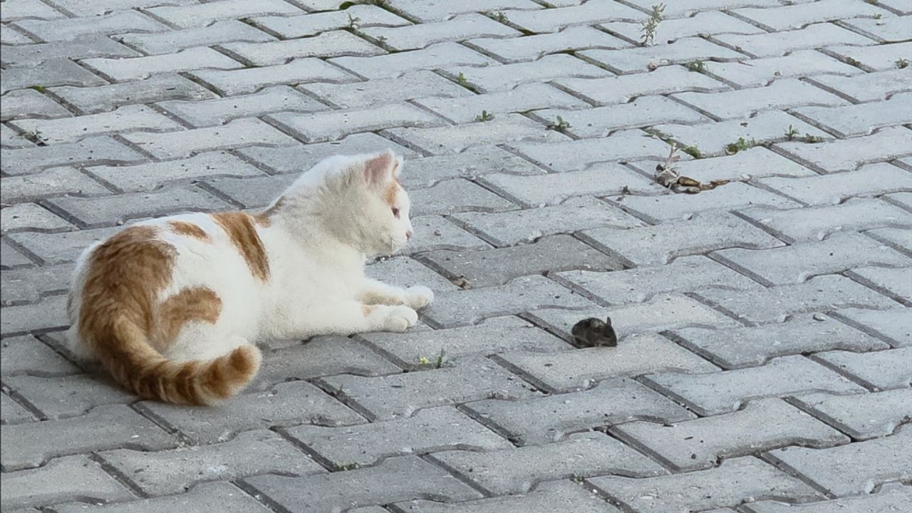 Sokakta kısa süre devam eden oyun, farenin otların arasına karışıp uzaklaşmasıyla son buldu.