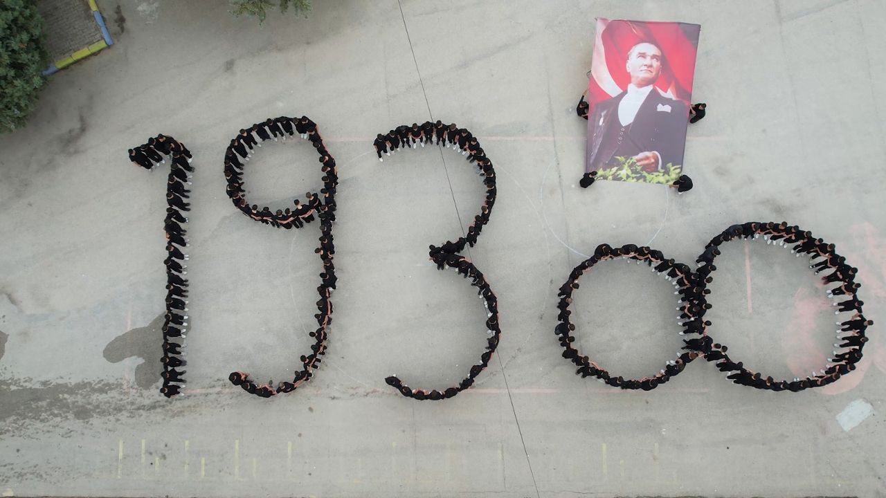 'Ulu Önder Gazi Mustafa Kemal Atatürk'ü vefatının 87. yılında saygıyla anıyoruz. Okul bahçesinde bir araya gelen öğrencilerimiz, büyük bir özveriyle Ata'ya olan sevgilerini ve saygılarını gösterdiler.'