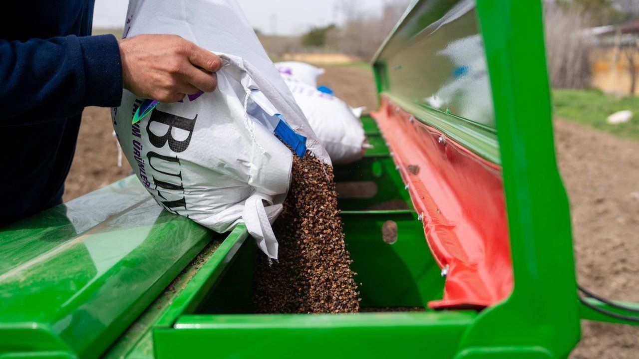 Gölbaşı Belediyesi Kırsal Hizmetler Müdürlüğü tarafından yürütülen çalışmalar kapsamında, katma değeri yüksek ve gluten içermeyen özelliğiyle çölyak hastaları için önemli bir besin kaynağı olan karabuğday tohumlarının 2026 yılı ekim süreci başladı.