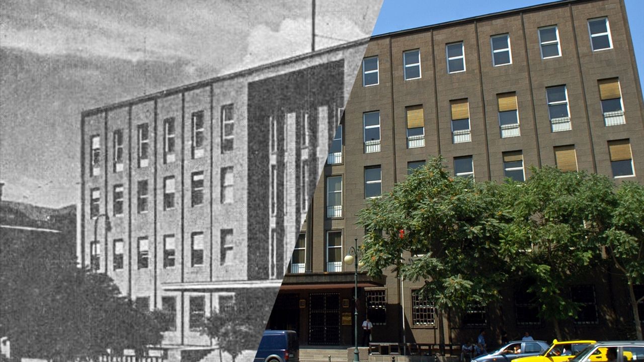 Avusturyalı mimar Clemens Holzmeister'in çizimini yaptığı yapı, günümüzdeki renkli fotoğrafta ise kültürel yaşamın bir parçası olarak öne çıkıyor.