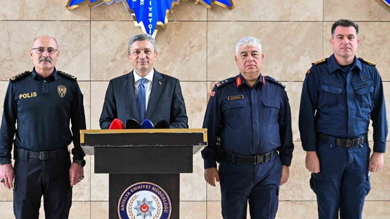 İl Emniyet Müdürlüğü'nde gerçekleştirilen basın bilgilendirme toplantısına Antalya Valisi Hulusi Şahin'in yanı sıra İl Emniyet Müdürü Dr. Sabit Akın Zaimoğlu, İl Jandarma Komutanı Tümgeneral Ahmet Kavukcu ve Sahil Güvenlik Grup Komutanı Yarbay Tolga Coşkun da katıldı.