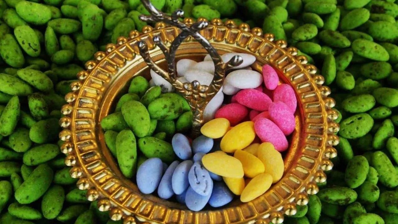 Tarihi Almacı Pazarı'nda çeşit çeşit badem şekeri müşterileri bekliyor