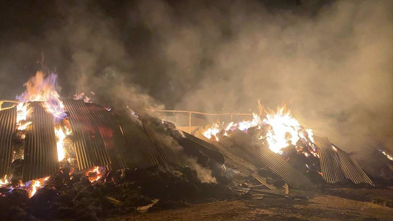 Yangında ambarın yanı sıra 1 traktör, 2 bin ot balyası ile 10 ton tahıl yandı.