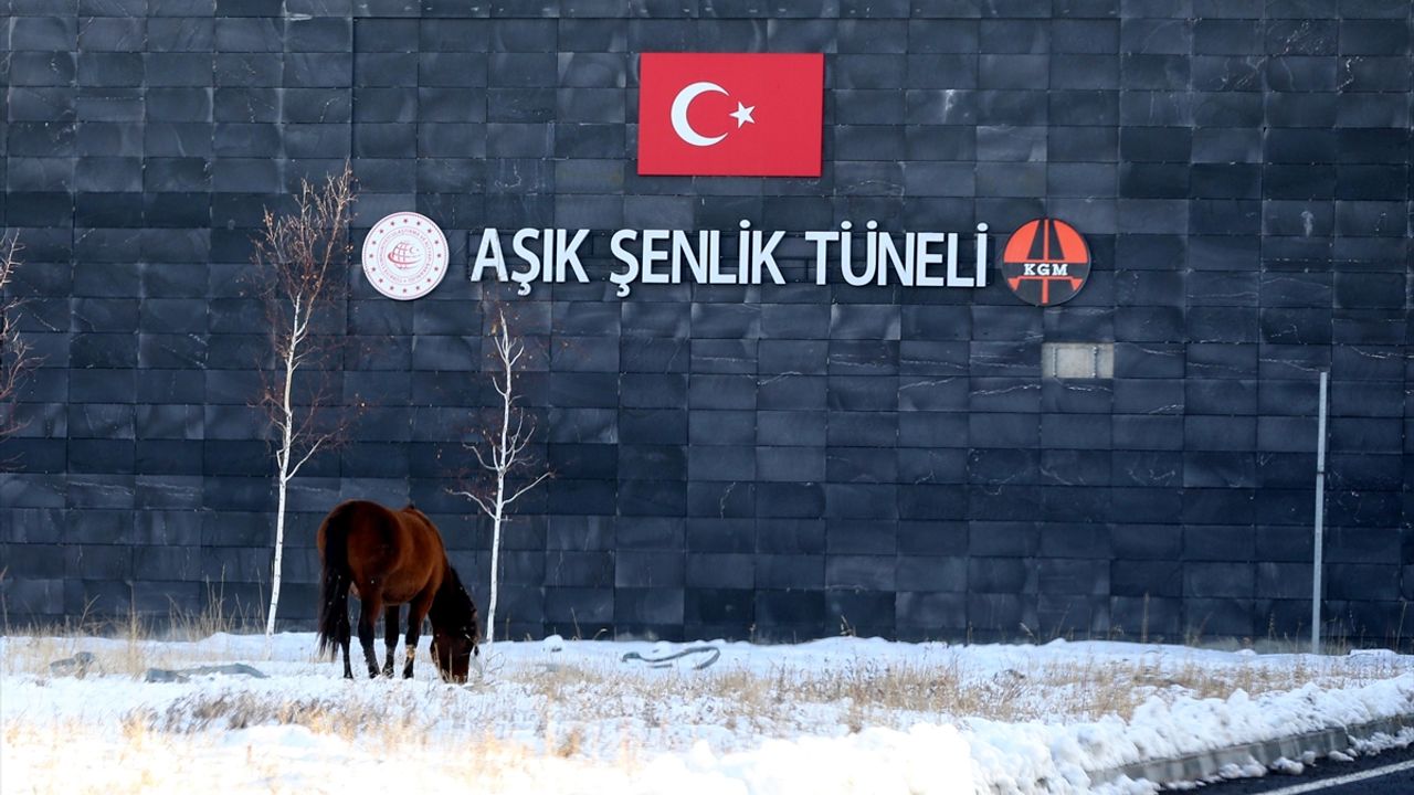 Doğada özgür yaşayan yılkı atları, yiyecek bulmak amacıyla Çıldır-Aktaş Gümrük Kapısı'na geçişi sağlayan Aşık Şenlik Tüneli girişine geldi.