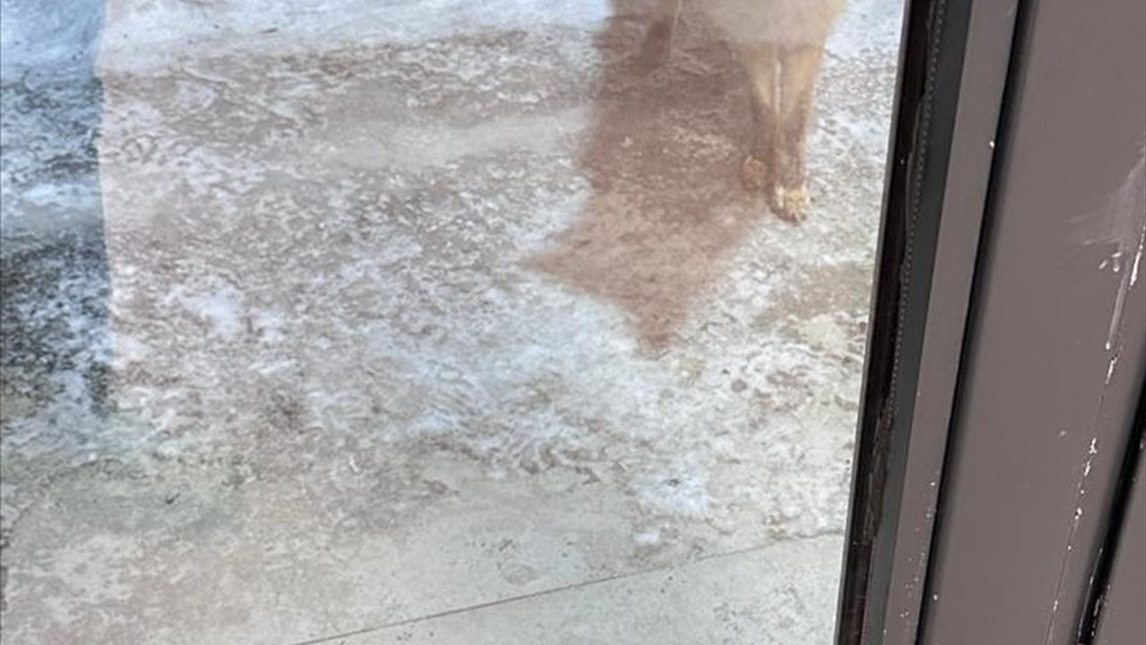 Ardahan Üniversitesi'ne ait Yüksek Öğrenim Kredi ve Yurtlar Kurumu bahçesine akşam saatlerinde inen bir tilkinin yem arayışı cep telefonuyla görüntülendi.