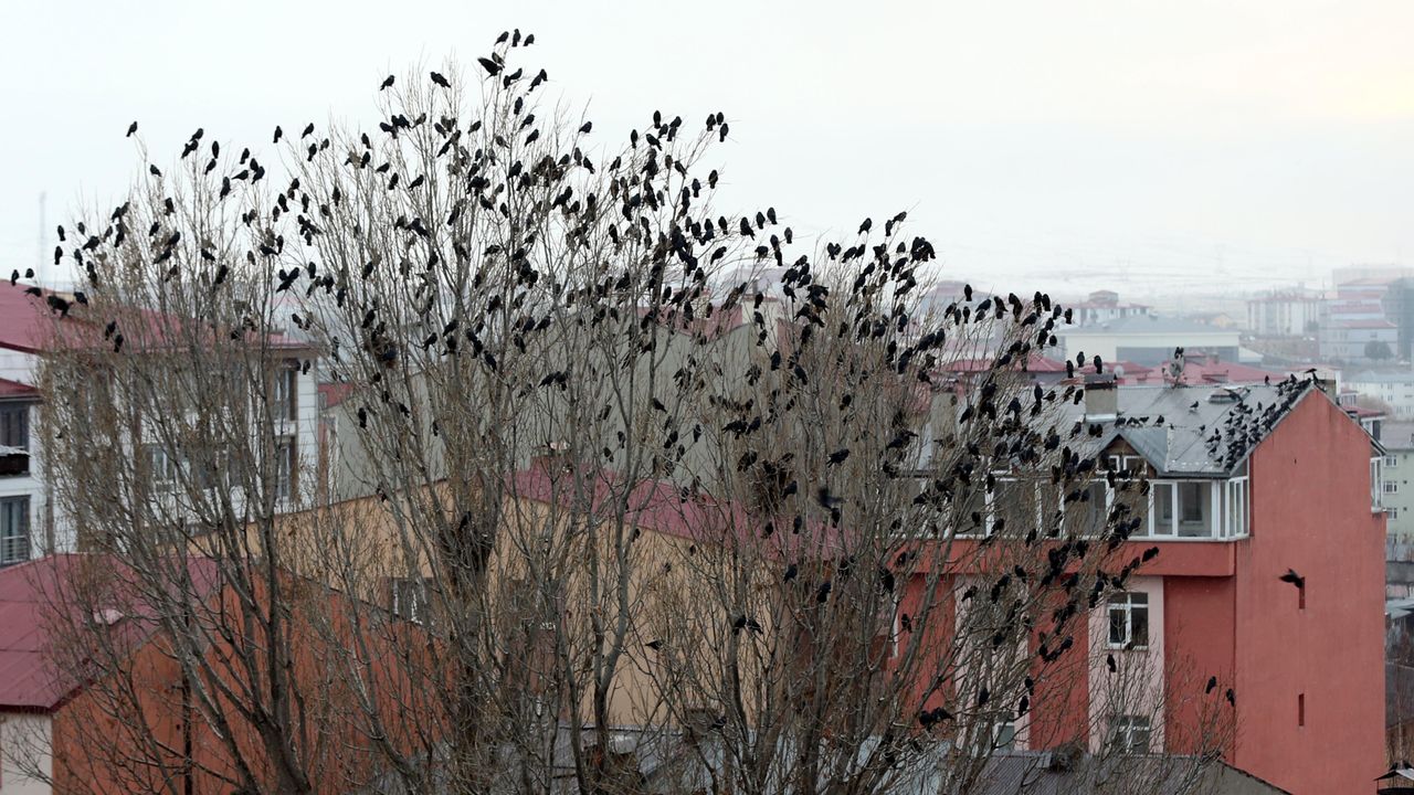 Yağışın ardından kent merkezinde çok sayıda kuş gökyüzünde toplandı.