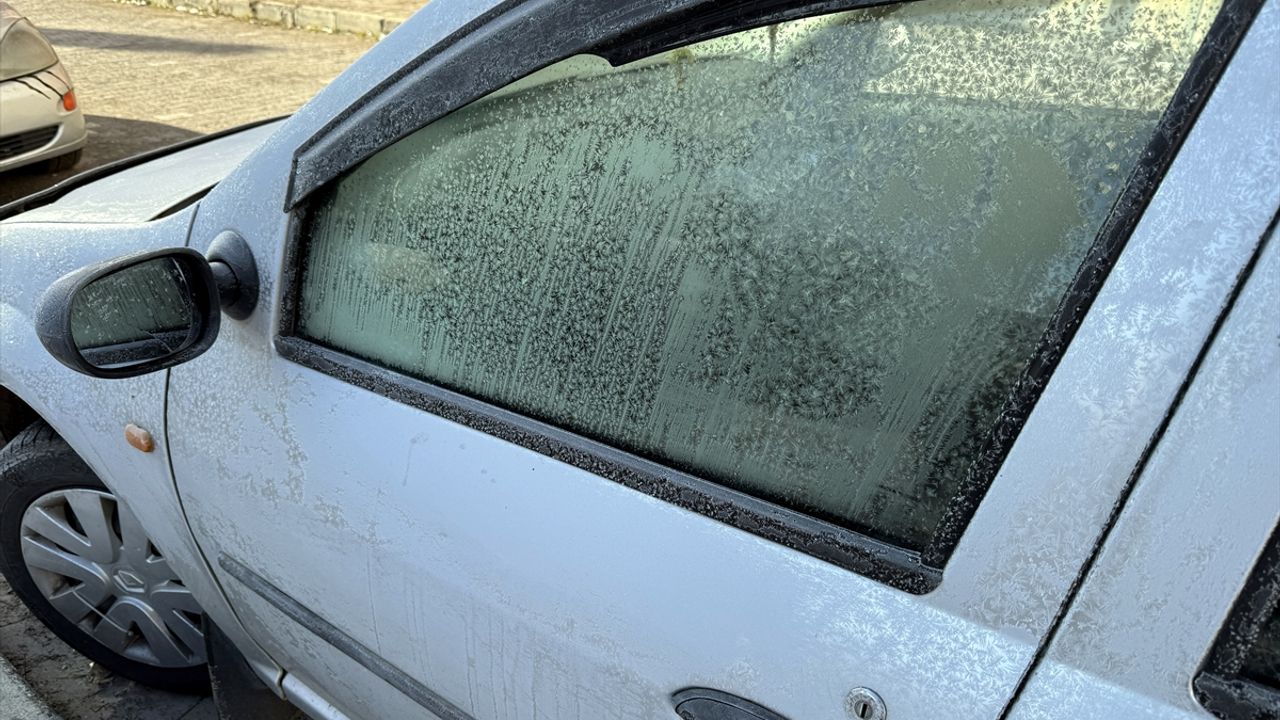 Termometrelerin gece sıfırın altında 10 dereceyi gösterdiği kentte, kırağı oluştu.