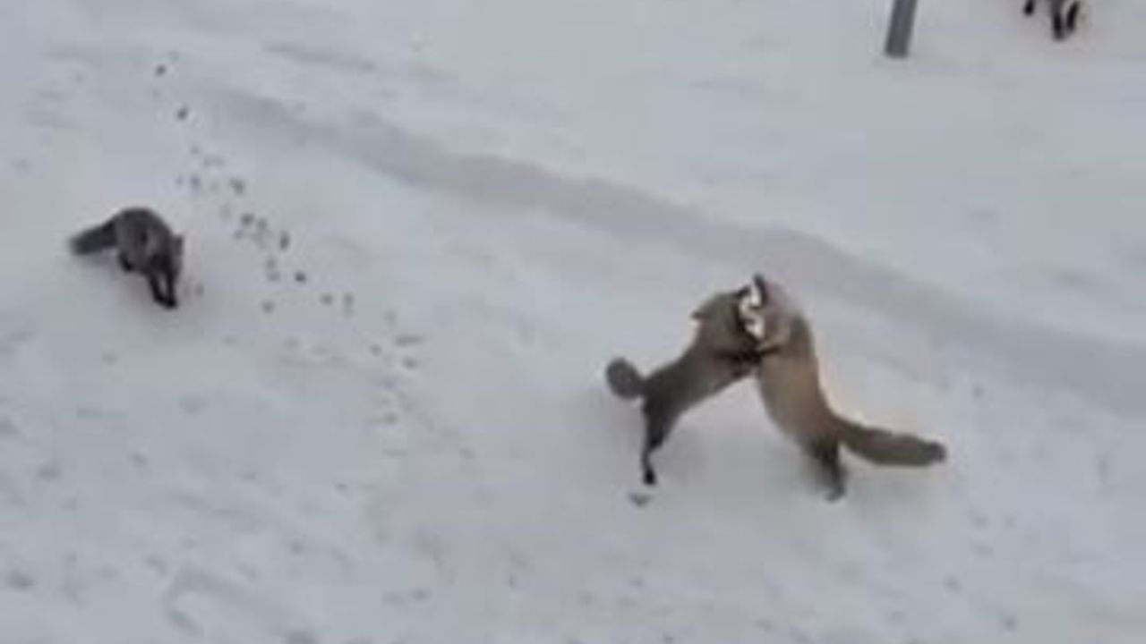 Karayolları personeli tarafından beslenen tilkiler, kendi aralarında ekmek kavgasına düştüler. Uzun bir süre kavga eden tilkiler daha sonra verilen yiyecekleri yemeye başladı. Bu güzel anlar ise cep telefonu ile kayda alındı.