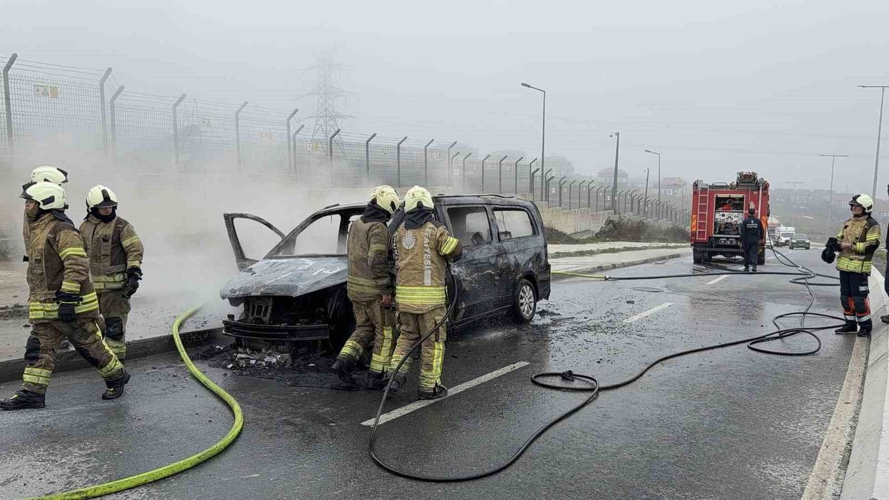Arnavutköy'de İstanbul Havalimanı'nda çalışan VIP transfer taksi minibüs, seyir halindeyken alev aldı. Sürücü son anda aracı yol kenarına çekerek terk ettiği olayda can kaybı ya da yaralanma yaşanmadı. Aracın alev alev yandığı anlar cep telefonu kamerasıyla kaydedildi. Yol bir süre trafiğe kapandı.