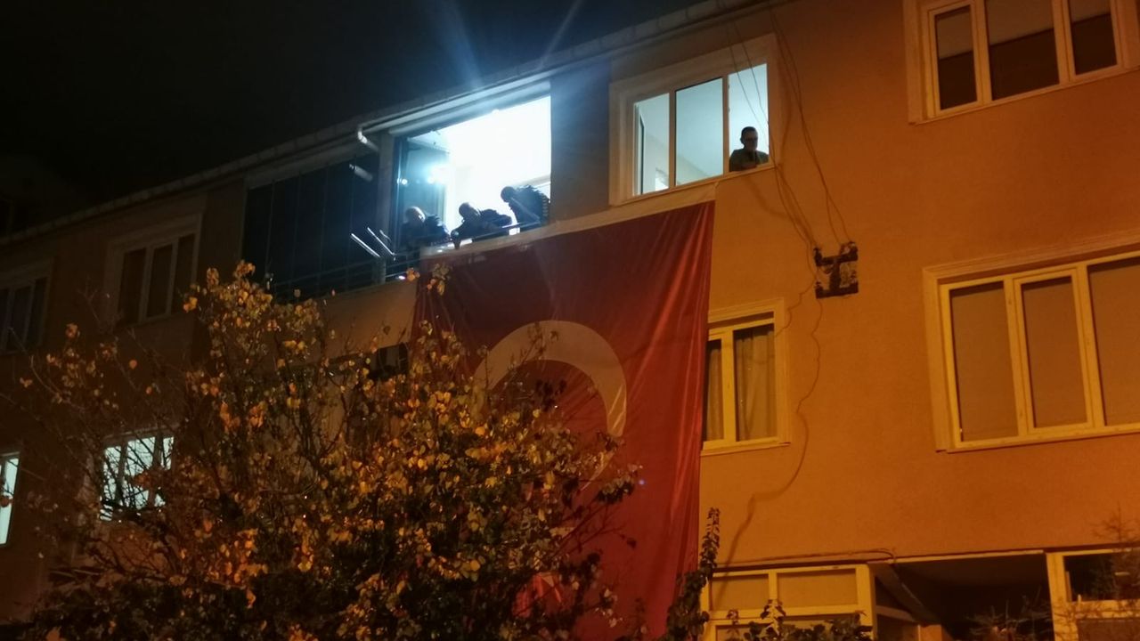 Ailenin yaşadığı binaya Türk bayrağı asıldı.