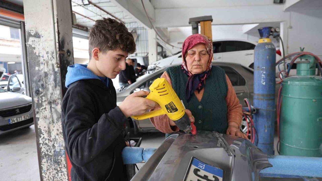 Aydın'da oto doğrultma ustası olarak çalışan 63 yaşındaki kadın, erkek egemen sanayide 45 yıllık tecrübesi ve yetiştirdiği çıraklarla dikkat çekiyor.