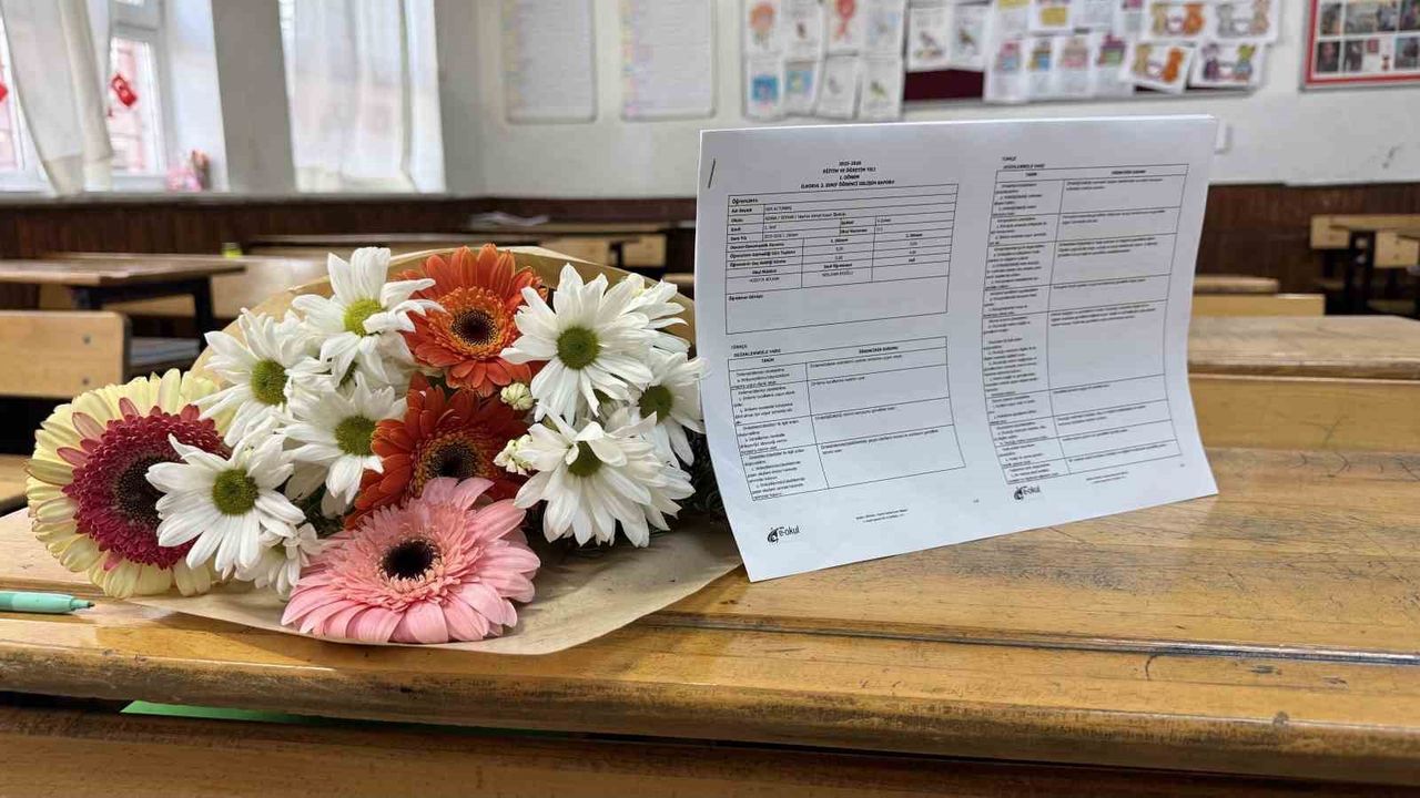 Adana'da babaları tarafından öldürülen Ada ve Mert'in karneleri, çiçeklerle birlikte sınıflarındaki masalarına bırakıldı.