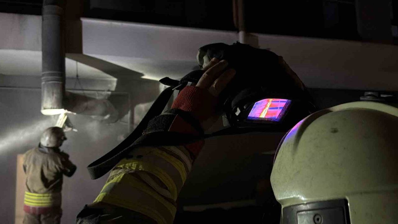 Düzce'de bir işletmenin bacasında çıkan yangına itfaiye ekipleri termal kamera ile müdahale etti.