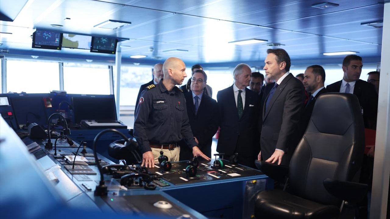 Bakan Bayraktar, İstanbul Sarayburnu Limanı'nda bulunan ve Sakarya Gaz Sahası Faz-2 çalışmaları kapsamında deniz altına boru döşeme işlemini gerçekleştirecek Seven Vega gemisini ziyaret etti.