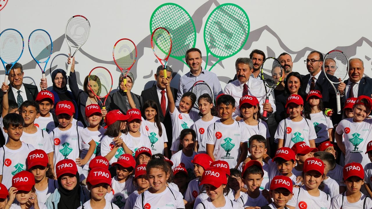 Burada 100 ilkokul öğrencisiyle bir araya gelen Bayraktar, daha sonra bazı öğrencilerle tenis oynadı.