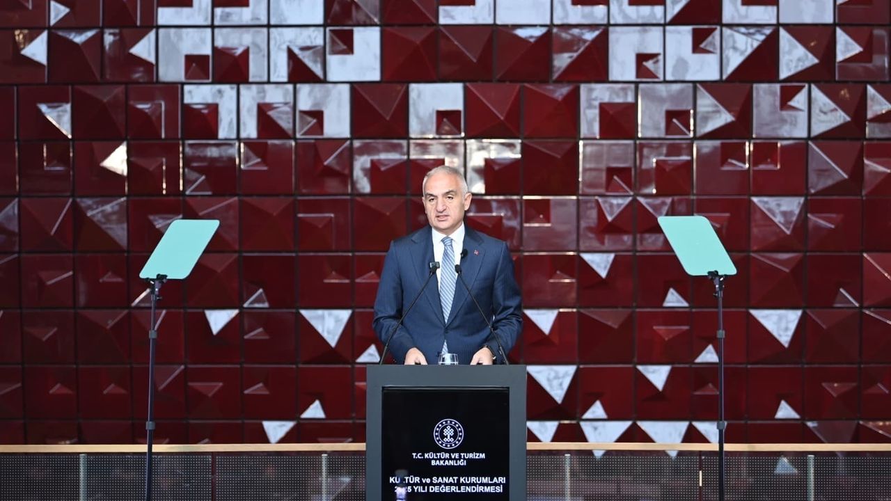 Kültür ve Turizm Bakanı Mehmet Nuri Ersoy, Atatürk Kültür Merkezi'nde düzenlenen basın toplantısında açıklamalarda bulundu. Ersoy, müzeden sahneye, kütüphaneden kazı alanlarına kadar kültür ve sanatın birçok alanında Türkiye'nin 2025 yılında Cumhuriyet tarihinin en yüksek rakamlarına ulaştığını söyledi.