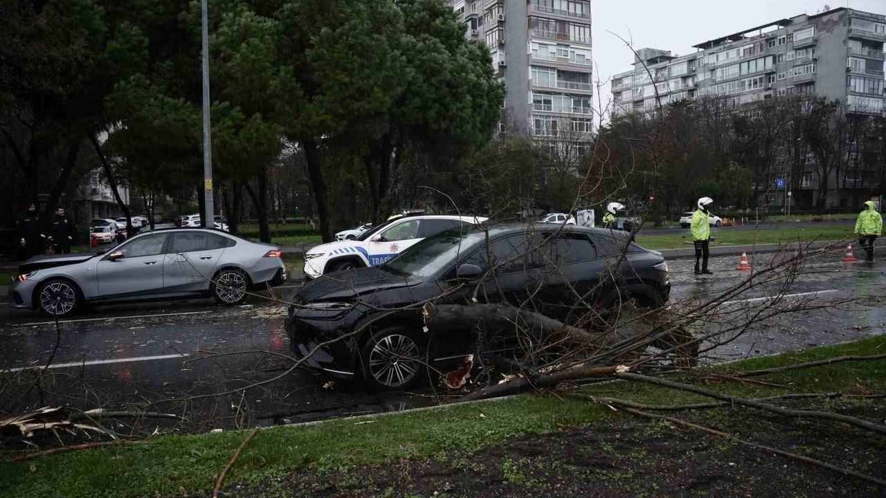 Bakırköy sahil yolunda etkili olan şiddetli fırtına nedeniyle bir ağaç 4 aracın üzerine devrildi. Olayda şans eseri ölen ya da yaralanan olmazken, araçlarda büyük çapta maddi hasar meydana geldi.