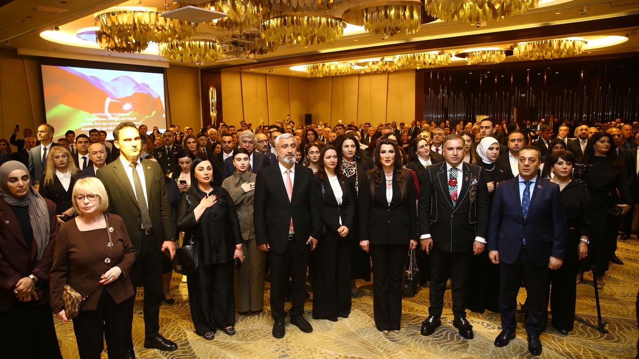 Vatan için canlarını feda eden şehitlerin ve hayatta olmayan devlet büyüklerinin saygı duruşuyla anıldığı etkinlikte, İstiklal Marşı ve Azerbaycan Milli Marşı okundu.