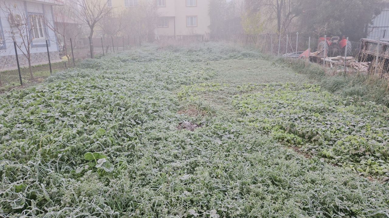 İlçede gece sıfırın altına düşen sıcaklık nedeniyle araçların camları ve tarım arazileri buzla kaplandı.