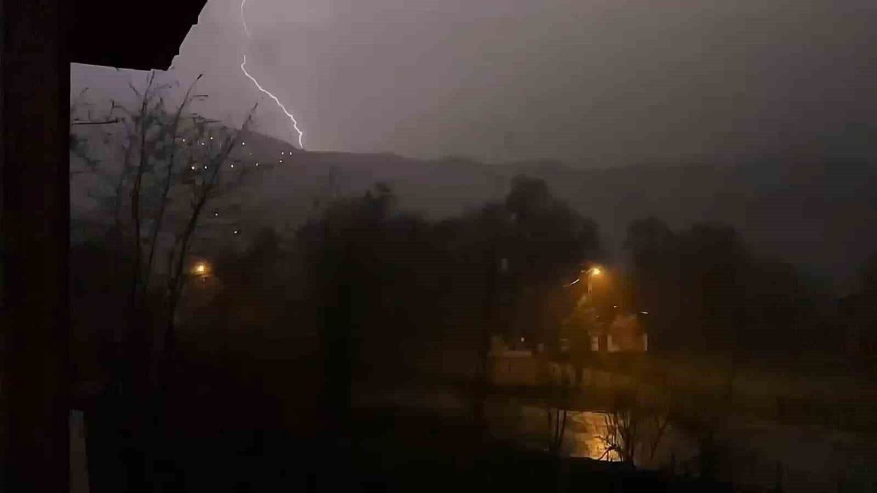 Bartın'ın Ulus ilçesinde akşam saatlerinde gök gürültüsü ile birlikte çakan şimşekler geceyi aydınlattı. Ardı ardına çakan şimşeklerle birlikte başlayan sağanak yağış da ilçe merkezi ve bağlı köylerde etkili oldu.