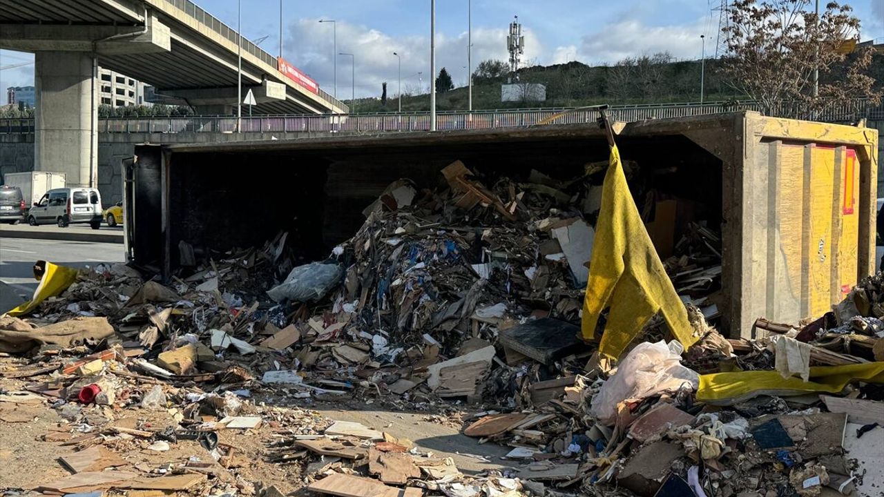 İkitelli Bağlantı Yolu'nda Ahmet K. idaresindeki 34 KKA 907 plakalı hafriyat kamyonu, yolun karşı istikametine doğru devrildi.