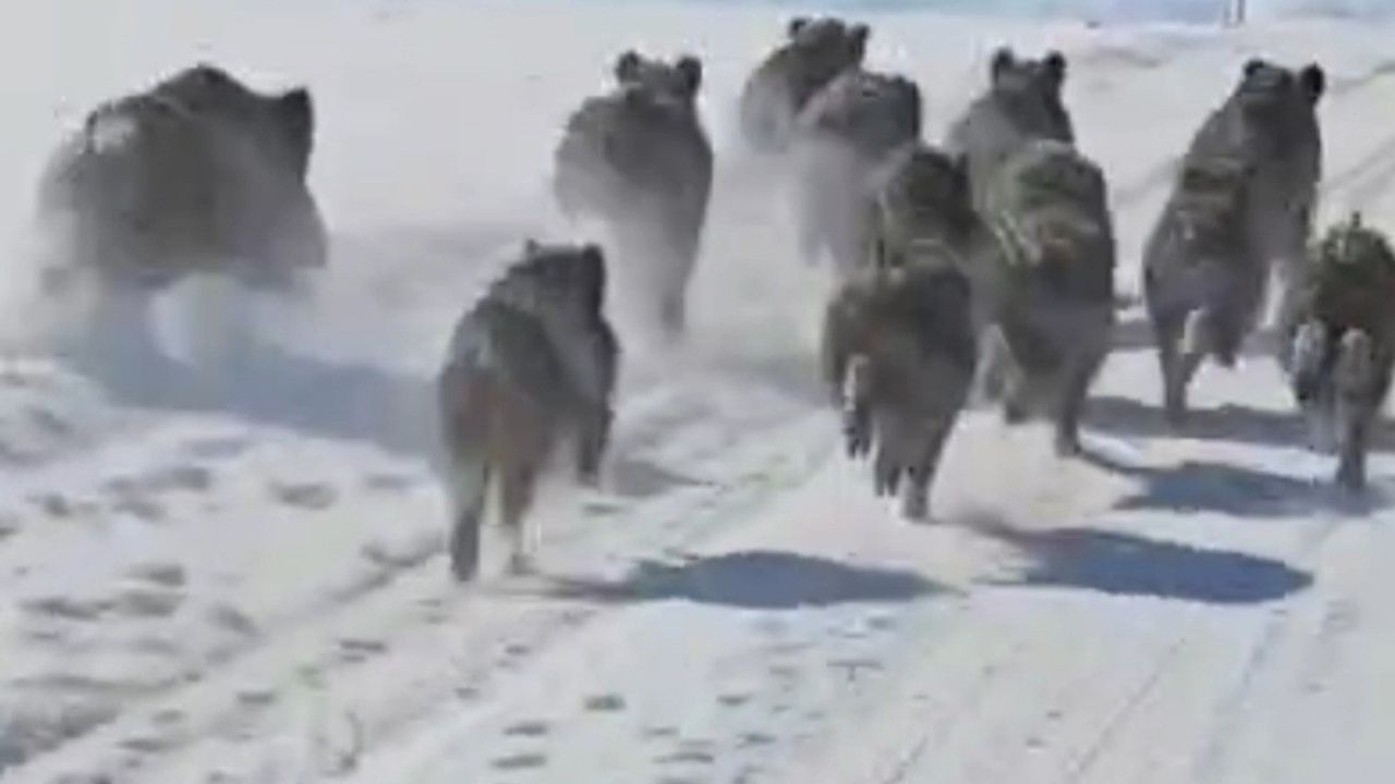 Van'ın Başkale ilçesinde sürü halinde yerleşim yerlerine kadar inen yaban domuzları görüntülendi.