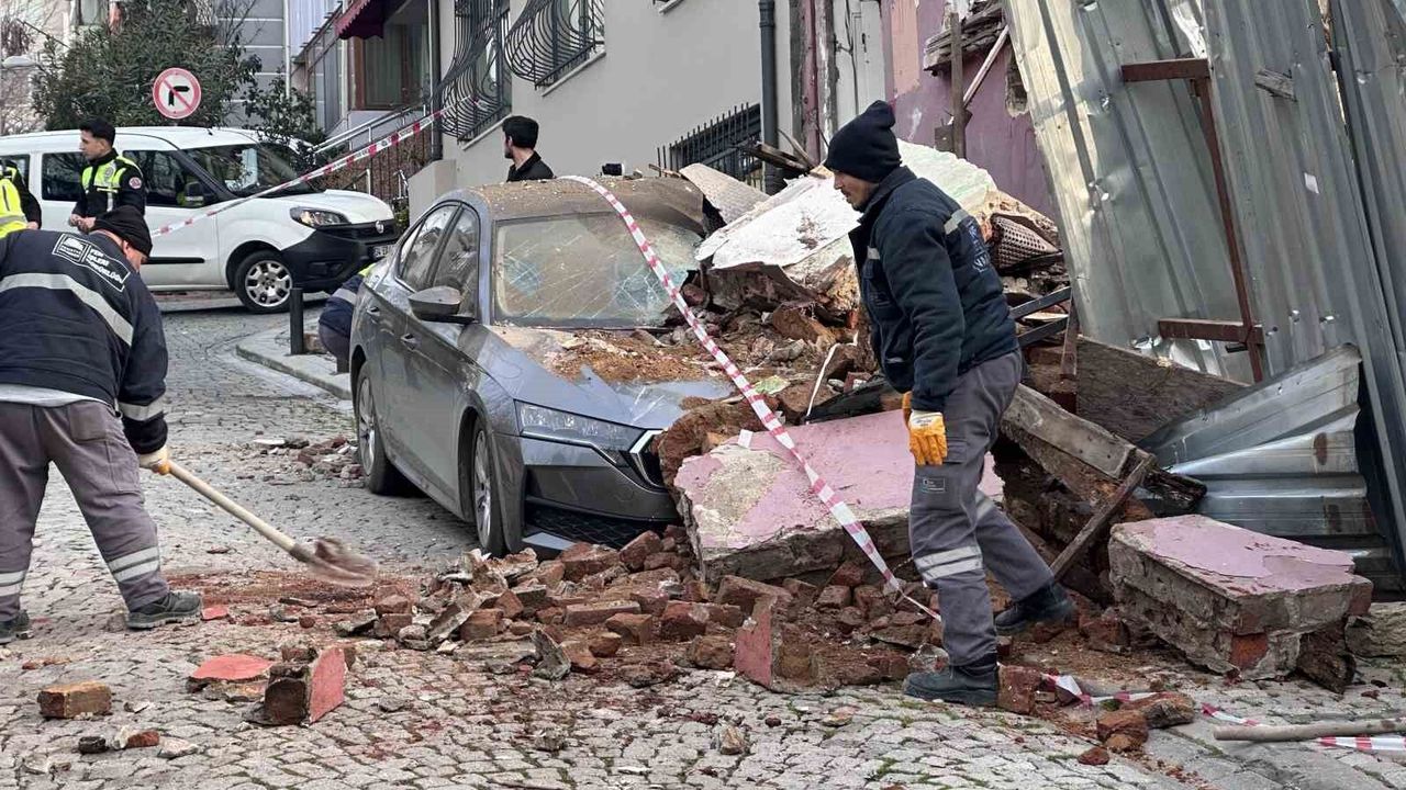 İstanbul Beşiktaş'ta iki katlı metruk binanın bir kısmı park halindeki aracın üzerine devrildi. Olayda şans eseri ölen ya da yaralanan olmazken, otomobilde maddi hasar meydana geldi. Kısmen çöken bina havadan görüntülendi.