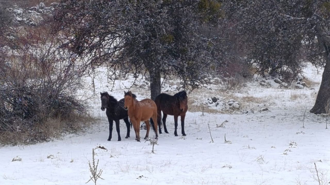 Ankara'nın Beypazarı ilçesinde kar altındaki yılkı atları kartpostallık görüntü oluşturdu.