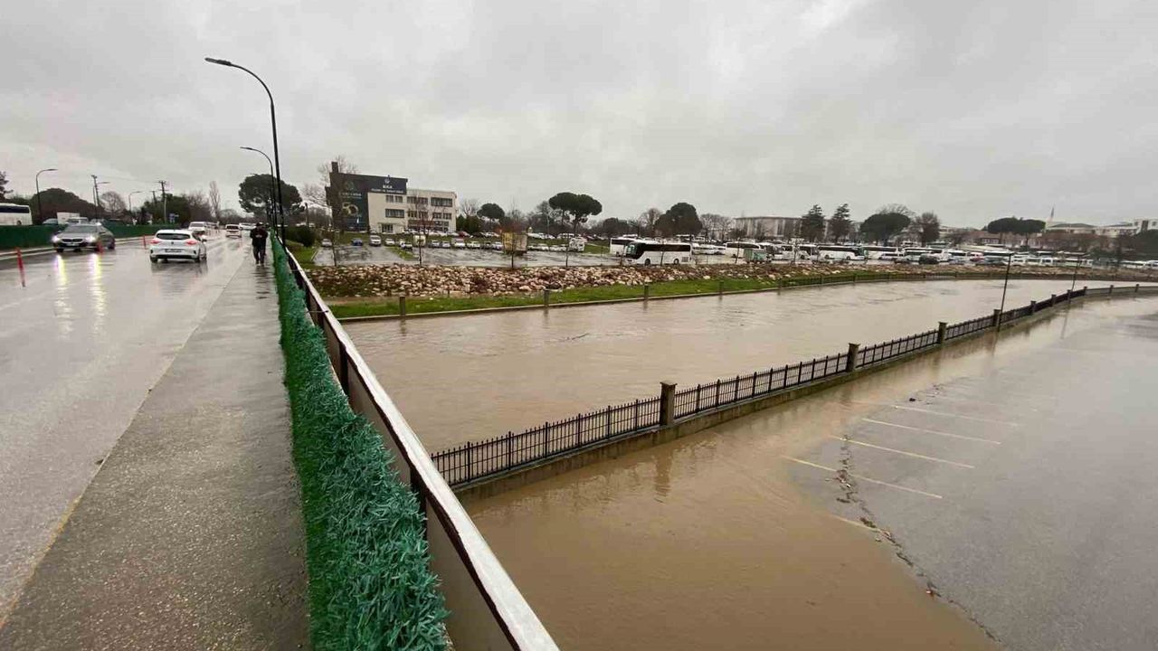Çanakkale'nin Biga ilçesinde 2 gündür etkili olan yağmur nedeniyle, ilçe merkezinden geçen Kocabaş Çayı, debisi yükselince taştı. Çay yatağındaki otopark ise kullanıma kapatıldı.