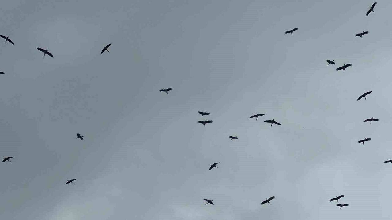 Bursa'ya Kestel ilçesi tarafından Gölbaşı üzerinden giren leylek sürüsü, yağmura rağmen yoluna devam etti.