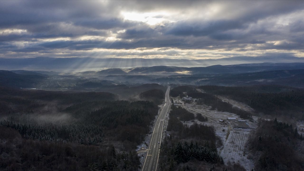 BOLU/DÜZCE/KARABÜK (AA) - Bolu, Düzce ve Karabük'ün yüksek kesimlerinde etkisini sürdüren kar yağışıyla beyaza bürünen doğa havadan kayda alındı.