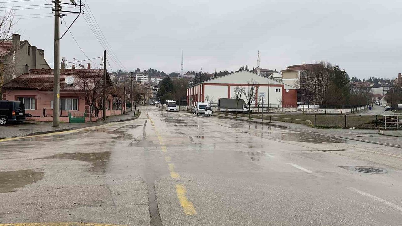 Bolu'da sabahın erken saatlerinde etkili olan yağmur, hafta sonunun da etkisiyle cadde ve sokakların boş kalmasına neden oldu.