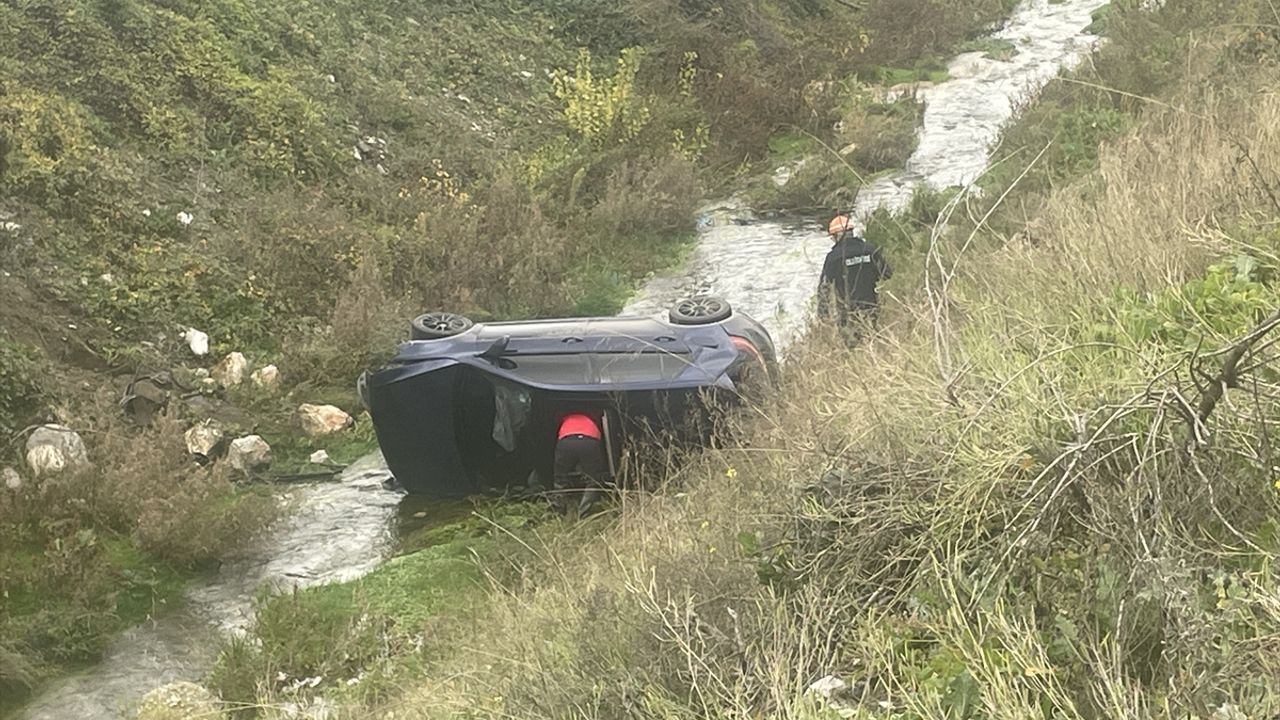 T.K. idaresindeki 34 BJE 993 plakalı otomobil, Çele Caddesi'nde dereye devrildi.