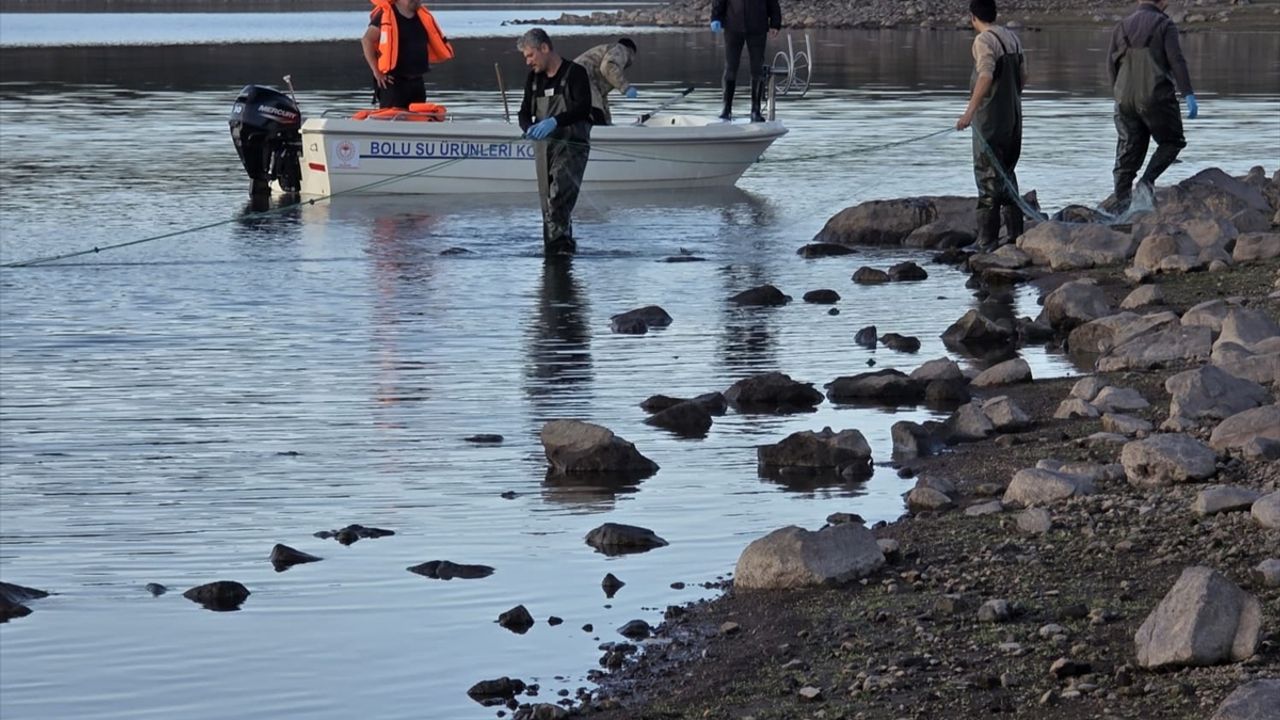 BOLU (AA) - Bolu'da Seben Taşlıyayla Göleti'ne kaçak avcıların bıraktığı 5 bin metre uzunluğundaki ağdaki 500 balık kurtarıldı.