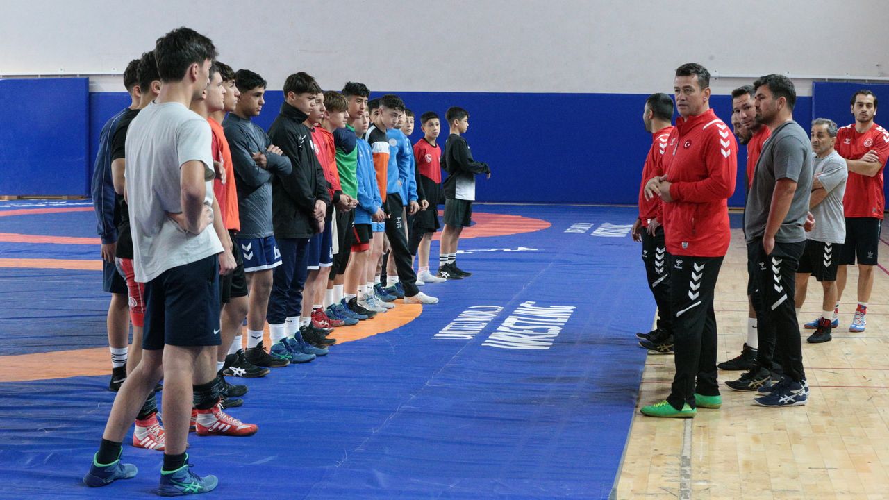 Gençlik ve Spor İl Müdürlüğünün Karaçayır Mahallesi'ndeki tesislerinde kampa giren 20 genç güreşçi, 7-12 Ekim'de Romanya'nın Kaloşvar (Cluj-Napoca) kentinde gerçekleştirilecek şampiyonada mindere çıkıp başarılar elde etmek için antrenörleri gözetiminde ter döküyor.