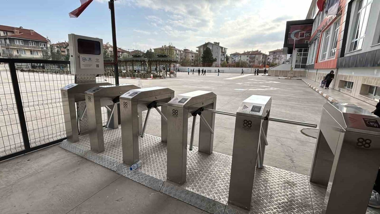 Bolu'da 100. Yıl İlkokulu'nda kurulan kartlı turnike sistemi sayesinde veliler, çocuklarının okula giriş ve çıkış saatlerini cep telefonlarına gelen anlık mesajlarla takip edebiliyor.