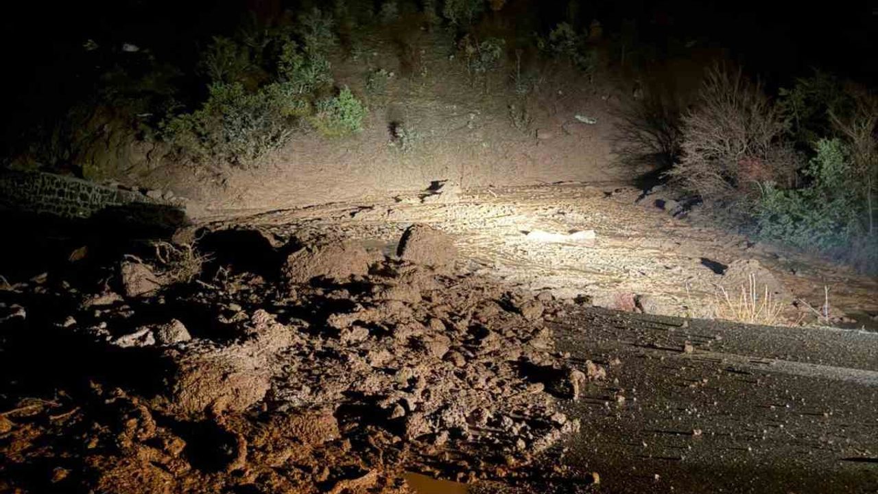 Bolu'nun Seben ilçesinde yol, aşırı yağış sonucu meydana gelen heyelan nedeniyle ulaşıma kapandı.