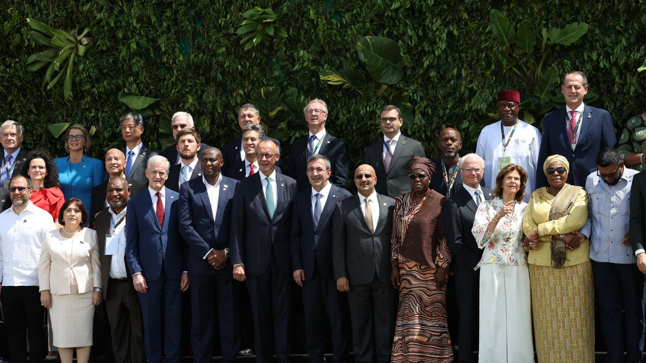 BELEM (AA) - Brezilya'nın Belem kentinde düzenlenen Birleşmiş Milletler (BM) İklim Değişikliği Çerçeve Sözleşmesi 30. Taraflar Konferansı (COP30) kapsamındaki 'COP30 Liderler Zirvesi'nin ikinci gününde liderler, Cumhurbaşkanı Yardımcısı Cevdet Yılmaz'ın da yer aldığı aile fotoğrafında bir araya geldi.