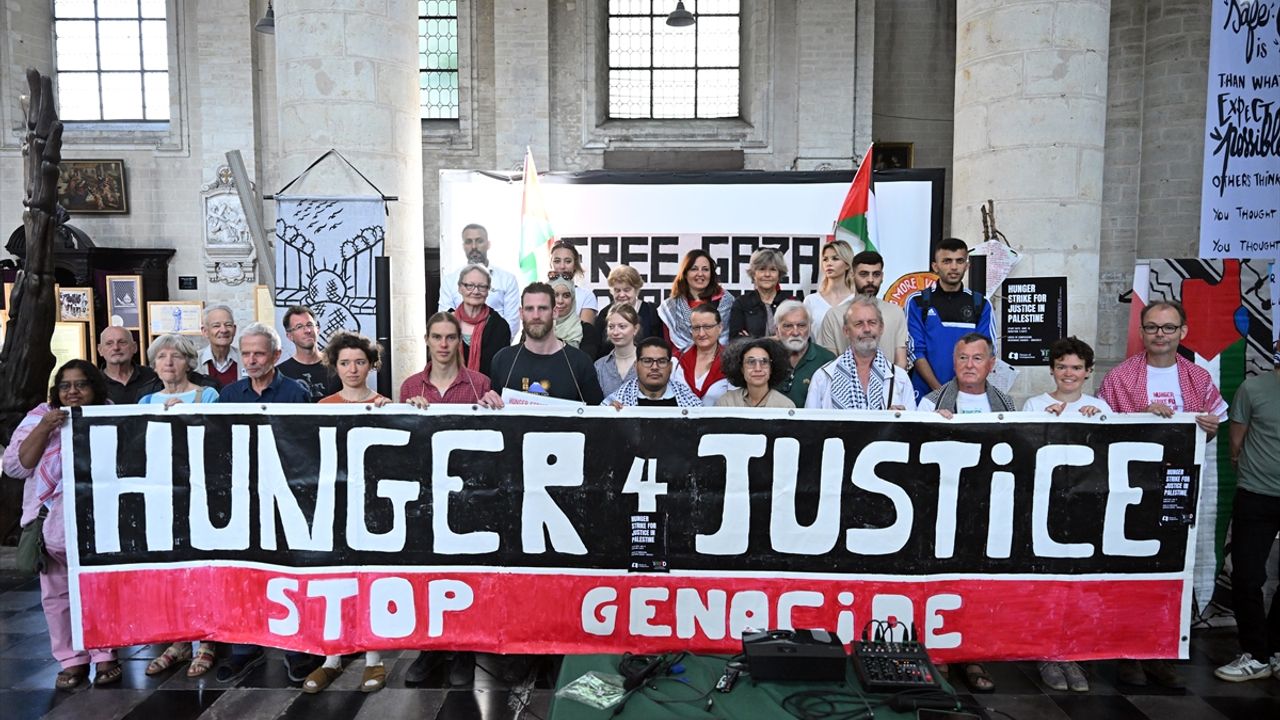 Brüksel'in merkezinde, sığınmacılar, evsizler ve yoksullara yönelik sosyal sorumluluk projelerine ev sahipliği yapmasıyla bilinen Beguinage Kilisesi bu kez 5 günlüğüne 'Filistin'e adalet için' açlık grevi yapanları ağırlıyor.