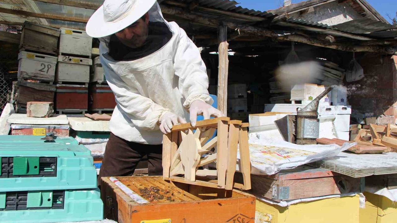 Eşi ve oğluyla birlikte 3 yıl önce arıcılık kursunda aldığı eğitim sonrası Yazı Bağları Mahallesi'ndeki evinin bahçesine kovanlar yerleştiren Hüseyin Çalışkan, hobi olarak arı yetiştirmeye başladı. İçinde binlerce arının bulunduğu kovanlarının sayısı 35'e ulaşan evli ve 2 çocuk babası Çalışkan, en kaliteli balı yetiştirmeye çabalarken bir kovandaki petek çıtalarına da şekil vermeyi planladı. Siyasetteki rekabeti kovana da taşımak isteyen Çalışkan, AK Parti'nin ampul, CHP'nin altı ok ve MHP'nin üç hilal amblemiyle 3 çıtayı şekillendirdi.