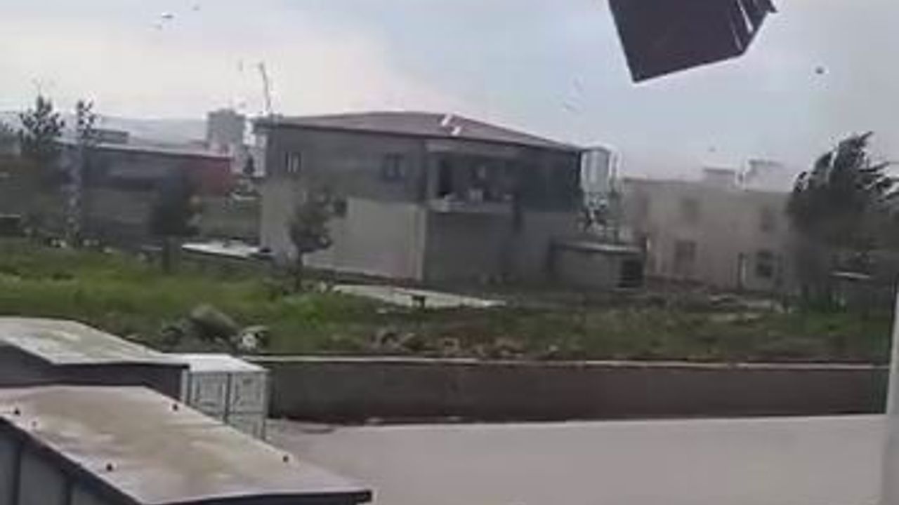 Diyarbakır'da şiddetli fırtına nedeni ile iki katlı bir binanın çatısı uçtu. Amerika'daki şiddetli kasırgaları hatırlatan o anlar cep telefonu kamerasına yansıdı.