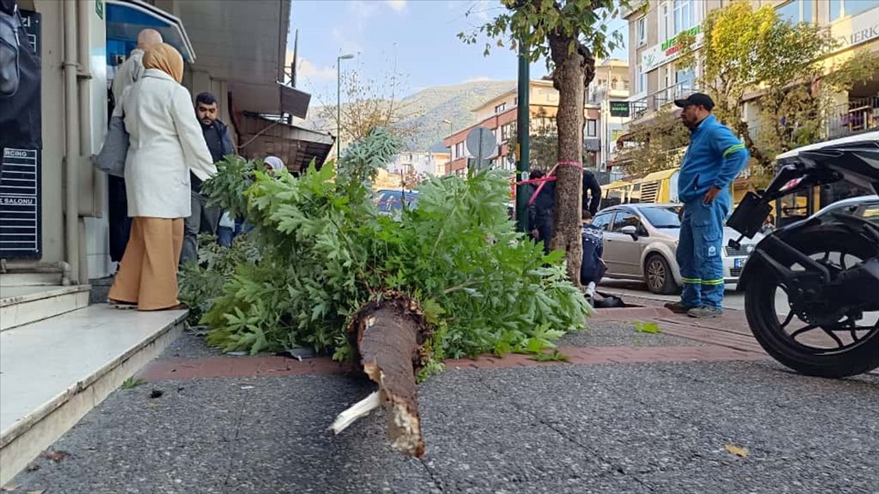 M.Y. idaresindeki 16 LFU 34 plakalı otomobil, Atatürk Caddesi'nde yolun karşısına geçmeye çalışan kişiye çarptıktan sonra direksiyon hakimiyetini kaybetti ve kaldırıma çıkarak bir ağacı devirdi.