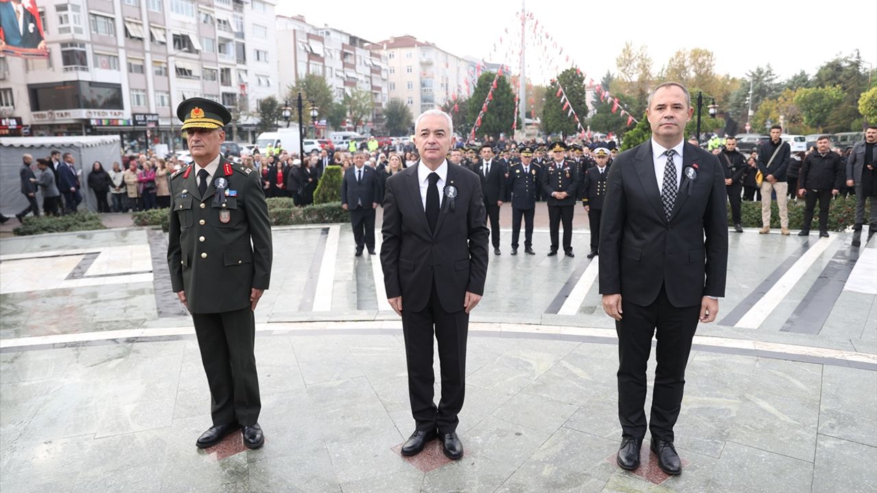 Devlet Bahçeli Meydanı'nda düzenlenen törende Vali Erdinç Yılmaz, Garnizon Komutanı Tuğgeneral Erkan Günal ve Belediye Başkanı İbrahim Çenet, Atatürk Anıtı'na çelenk sundu.