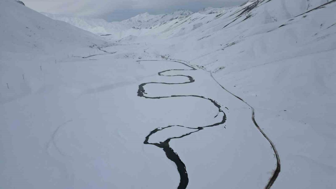 Şırnak'ın Beytüşşebap ilçesine bağlı Yeşilöz Faraşin Yaylası'nda kilometrelerce uzanan dev menderesler, yılın 4 ayı buz pistine dönüyor. Havaların ısınmasıyla çözülen dere yatağı dron ile görüntülendi. Beyaz gelinliğini giyen yaylada yılan gibi kıvrılan dere yatağı görsel şölen oluşturdu. Kar kalınlığının 3 metreyi bulduğu yaylada havaların ısınmasıyla her geçen gün yeni dere yatakları ortaya çıkıyor.